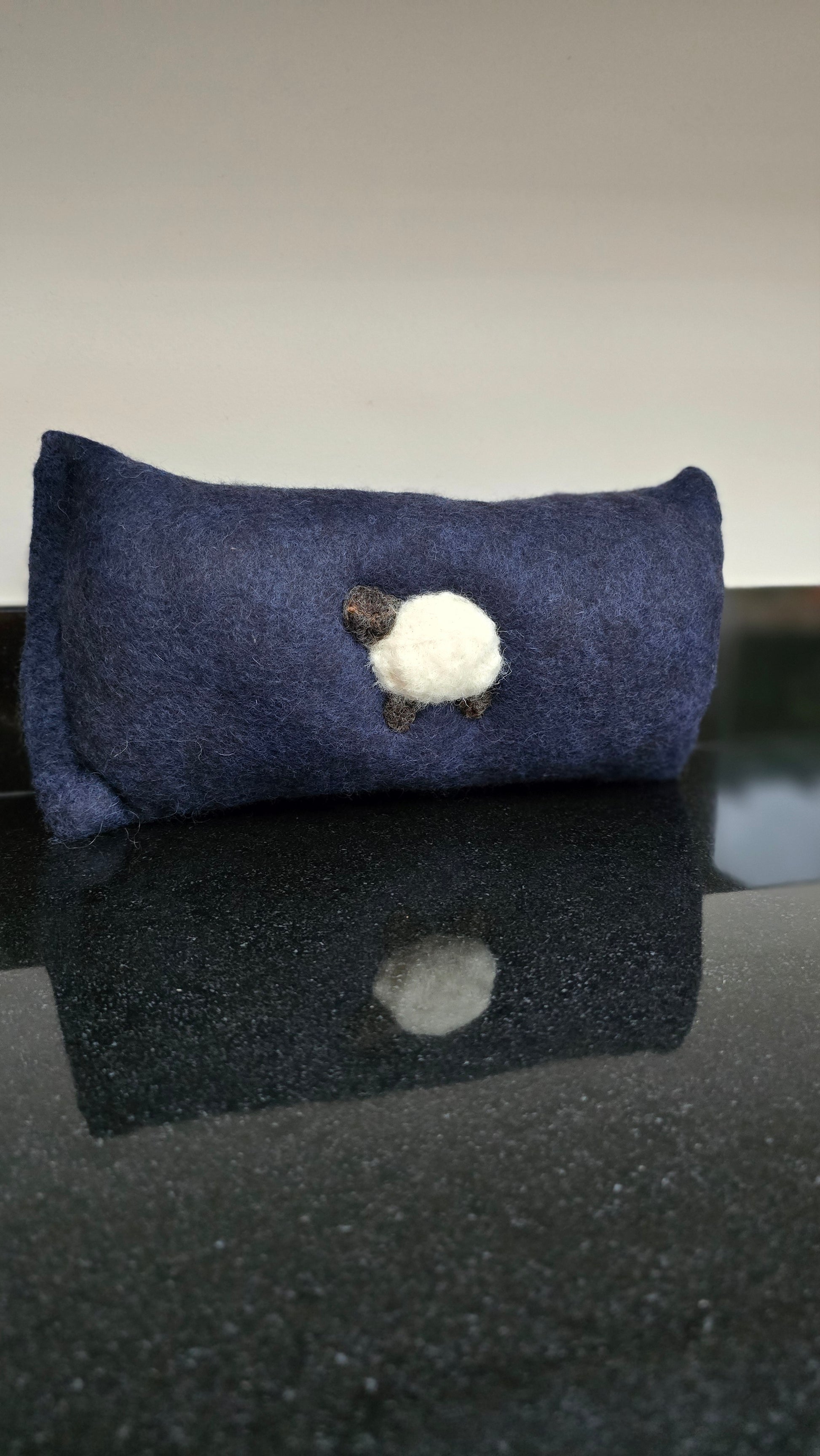 Inner stuffed with scoured Texel wool and the outer sleeve, is wet felted from Zwartble wool. It has also been acid dyed navy. Thoroughly washed to check for any run off.